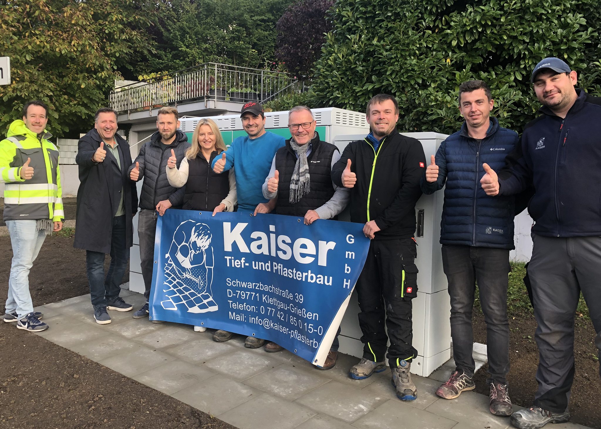 Mit jährlich steigenden Datenmengen wird eine leistungsstarke digitale Infrastruktur unabdingbar. Um frühzeitig die Weichen für die Zukunft zu stellen, investiert der Schönauer Internetanbieter Stiegeler rund 1,7 Mio. Euro in den eigenwirtschaftlichen Bau des Egginger Glasfasernetzes. Seit Februar laufen die Tiefbauarbeiten. Knapp acht Monate später sind die ersten 60 von insgesamt rund 340 beauftragen Hausanschlüssen betriebsbereit. Diesen Meilenstein feierten die Stiegeler Netzbauleiter Moritz Lutz und Darko Paliz sowie Senior Marketing Manager Christof Joos am Dienstag zusammen mit Bürgermeister Karlheinz Gantert und Geschäftsführer Daniel Kaiser von der ausführenden Baufirma Kaiser.